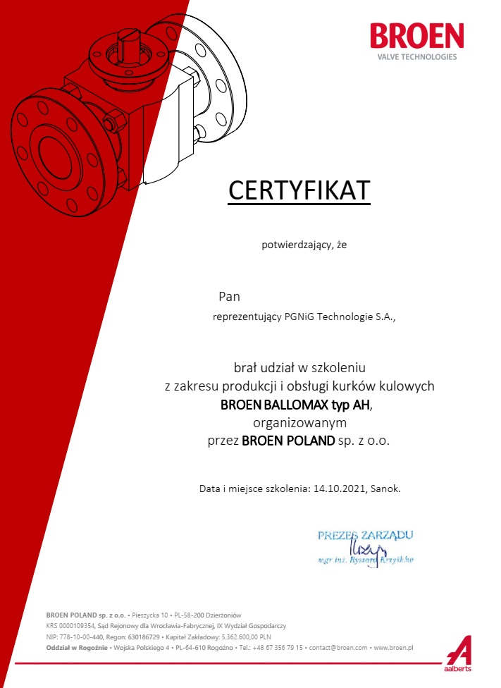 Szkolenie przeprowadziła dla nas firma BROEN POLAND Sp. z o.o., która jest od ponad 70 lat wiodącym, światowym liderem i producentem kurków kulowych.